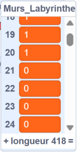 Mur_Labyrinthe est une liste qui contient une succession de 0 quand la case est libre et 1 quand il y a une cloison.